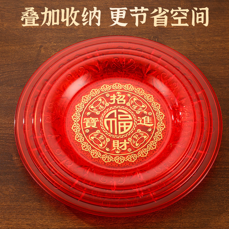 红色果盘平底供盘供果托盘上供佛前拜财神贡盘水果盘供佛家用红盘