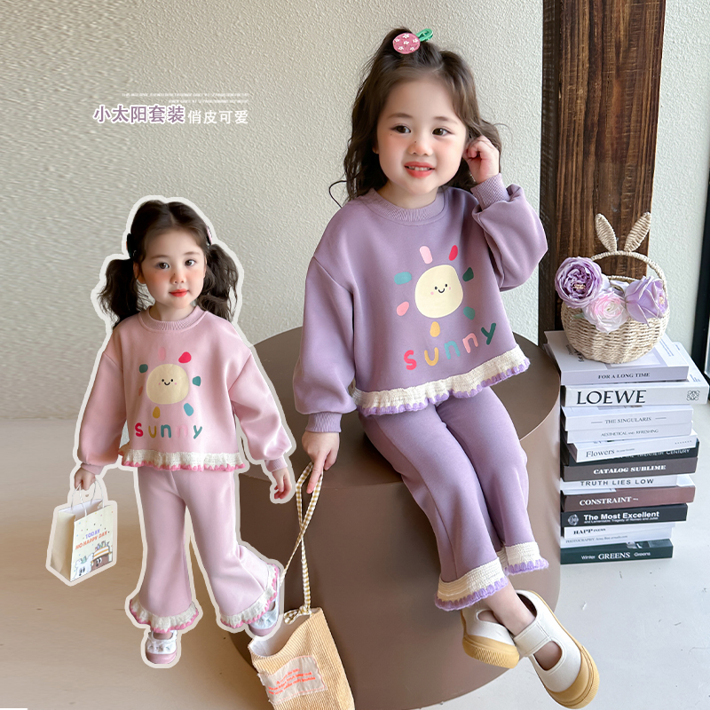 女童儿童卫衣套装中小童春秋2025新款洋气休闲卡通小童宝宝两件套