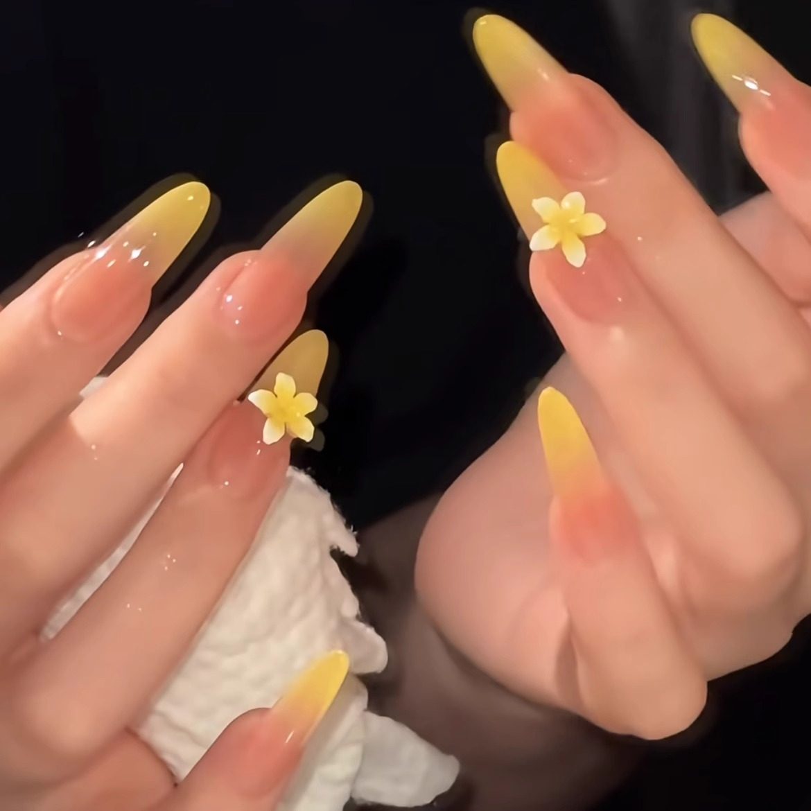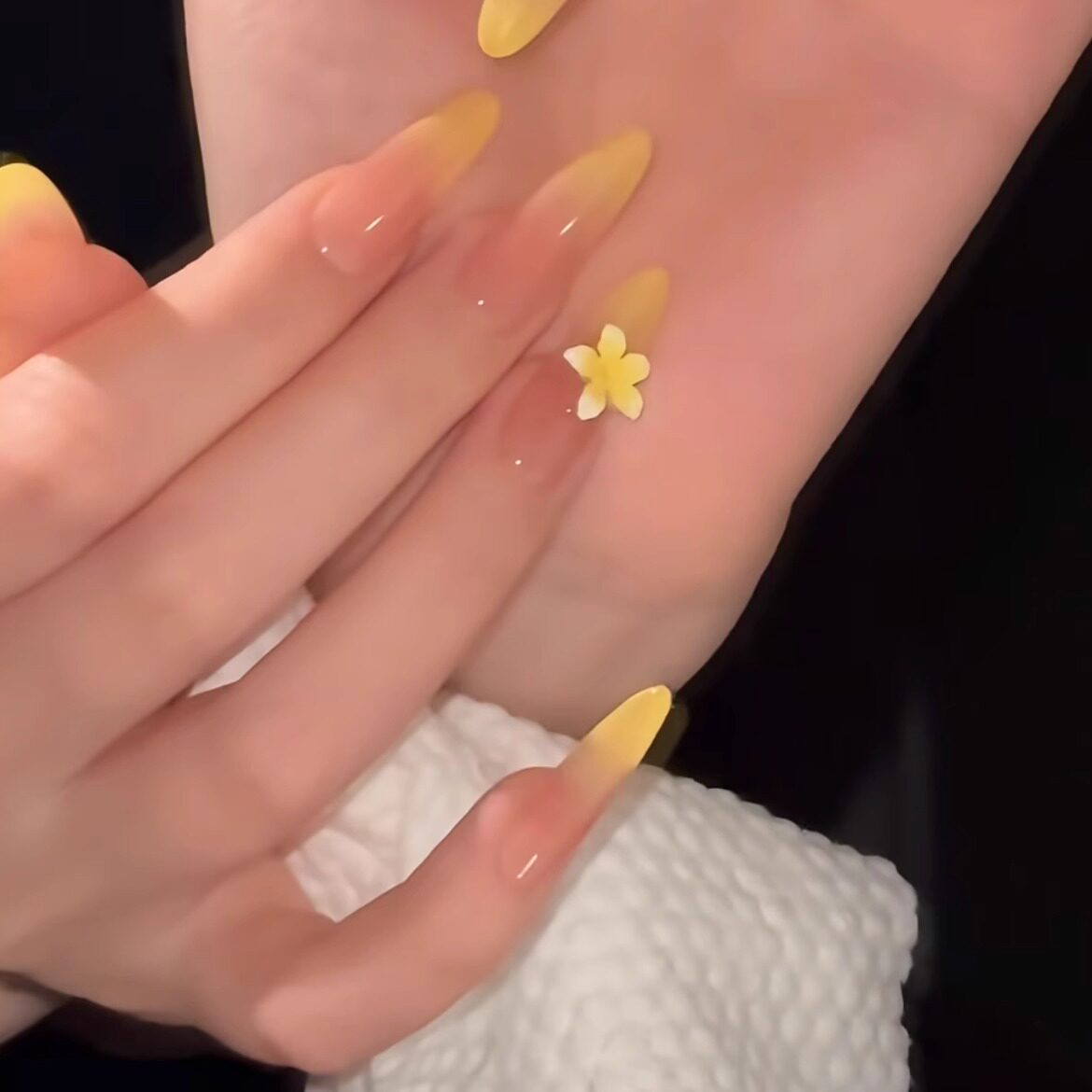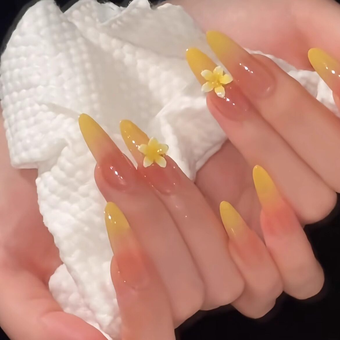 GC【芒桃冰绽】2025新款高级感手工穿戴甲长款渐变立体鸡蛋花显白