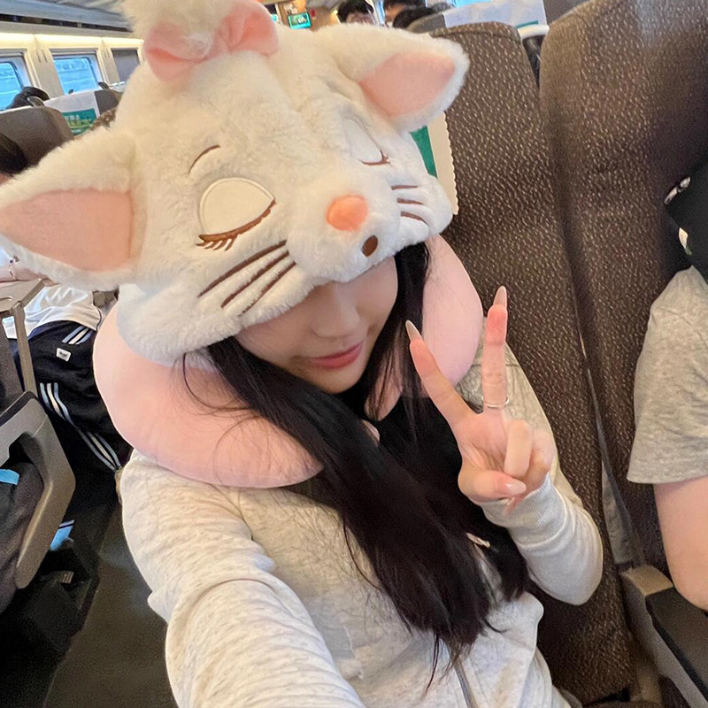 U型枕女生可爱迪士尼玛丽猫雪莉玫连帽护颈枕开车高铁飞机睡觉枕