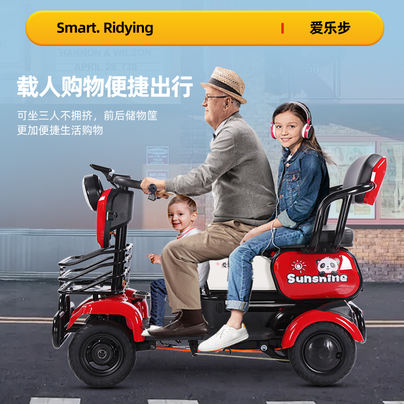 【首单直降】新款休闲 电动老年四轮双人家用成人滑板车接送孩子
