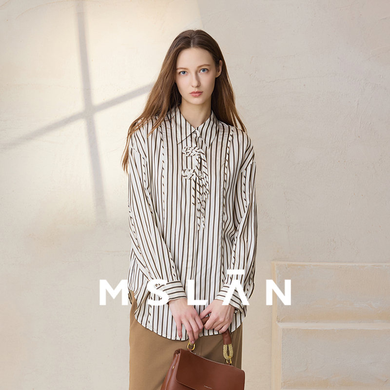 MSLAN春夏学院风醋纤条纹衬衫