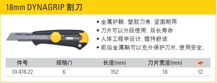 stanley美工刀 史丹利DYNAGRIP割刀 刀片宽度18mm 10-418-22