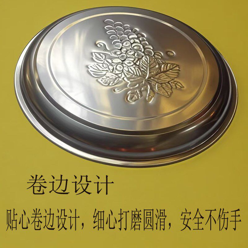 开业剪彩不锈钢托盘大号圆盘烧烤盘水果盘浅口平底盘火锅盘葡萄盘