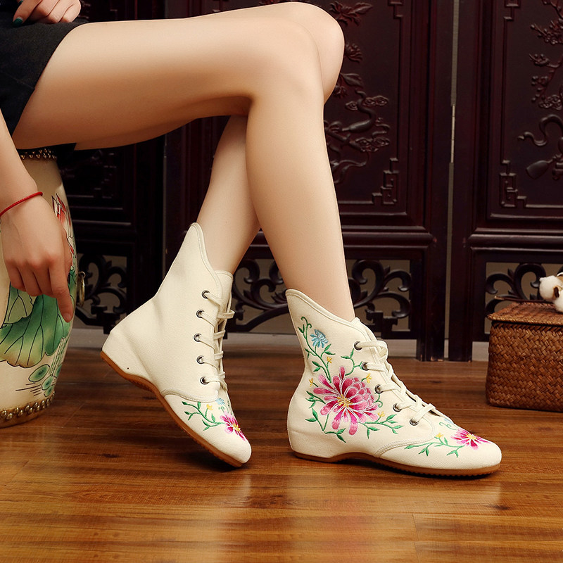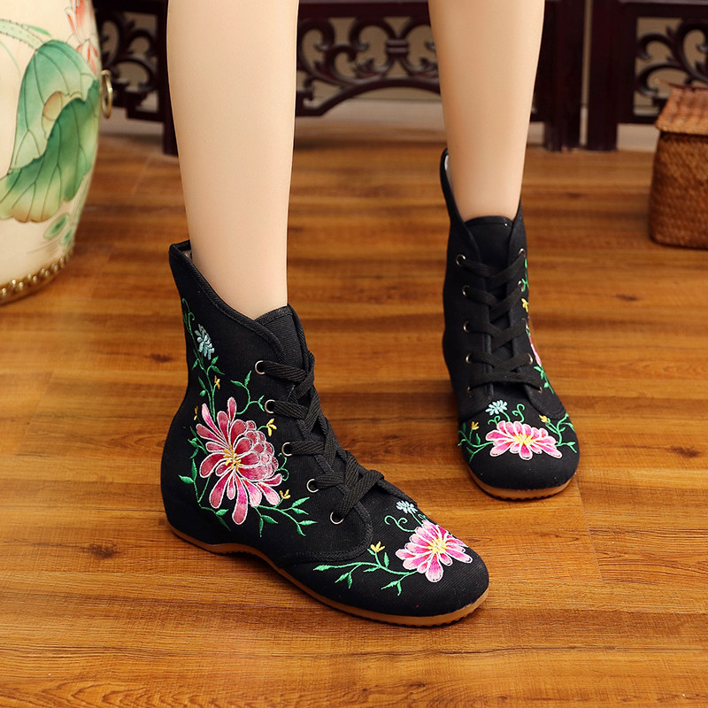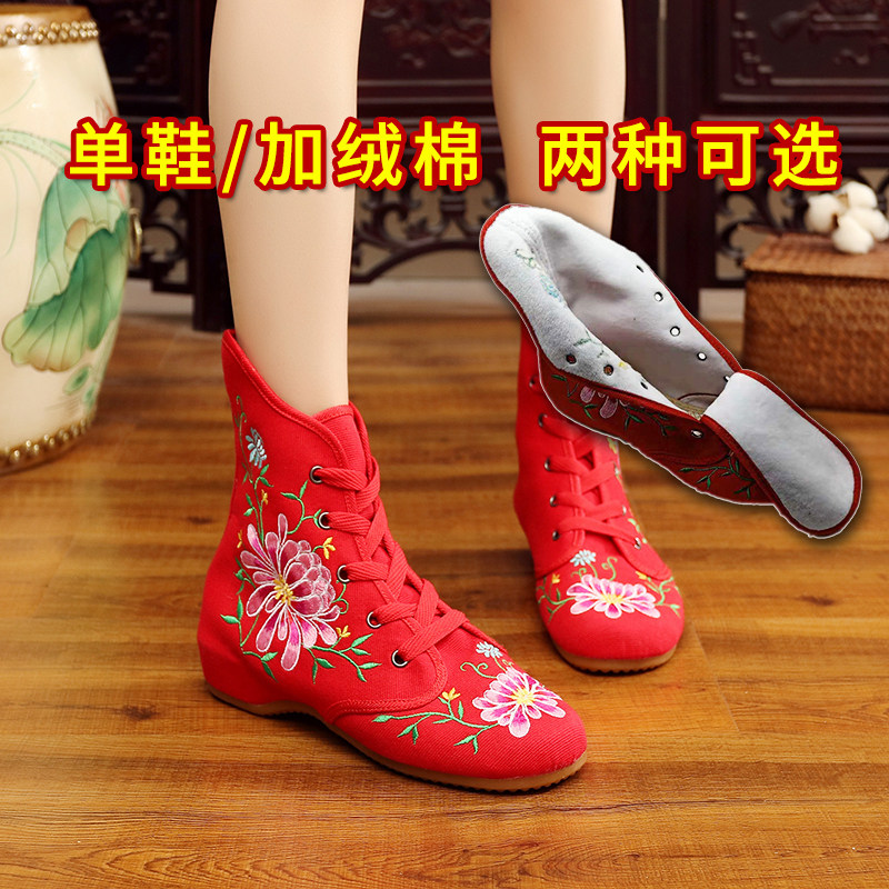 广场舞蹈鞋女靴子冬天新款秧歌舞鞋冬季北京布鞋绣花鞋跳舞演出鞋