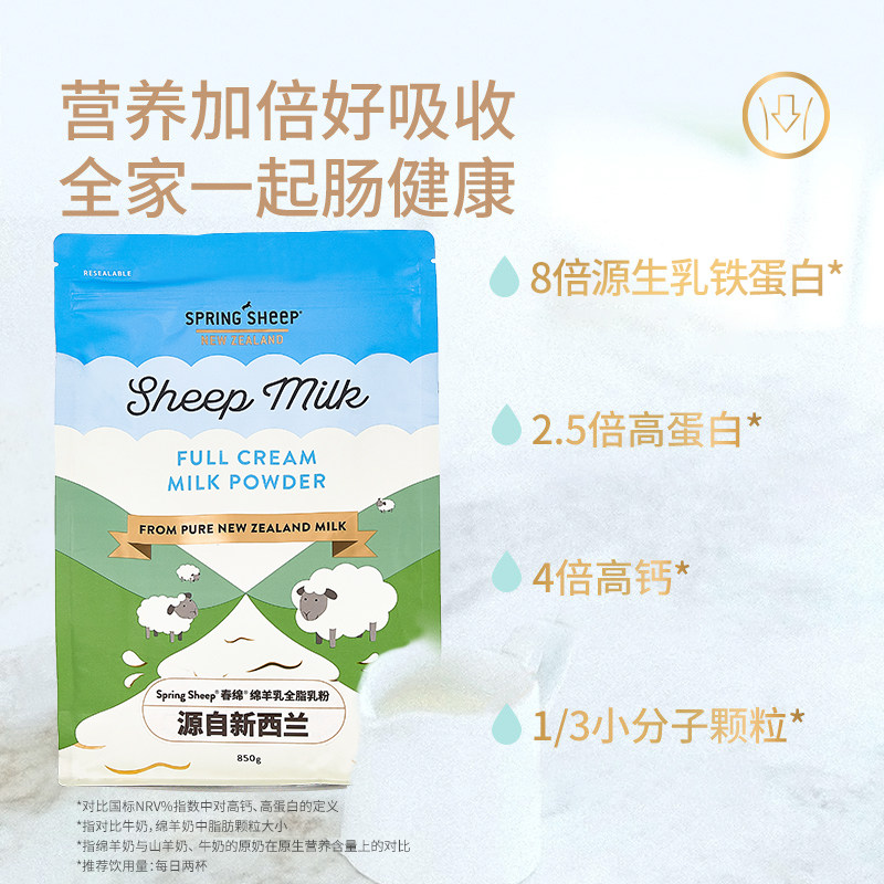 Springsheep春绵羊奶粉进口儿童全脂奶粉高钙成人营养羊奶粉850g