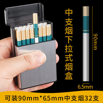 32支装大容量下拉弹盖6.5mm中支塑料烟盒男女士时尚便携创意烟合
