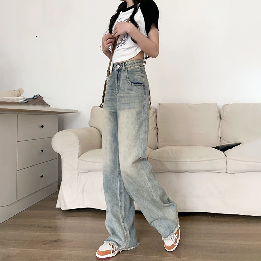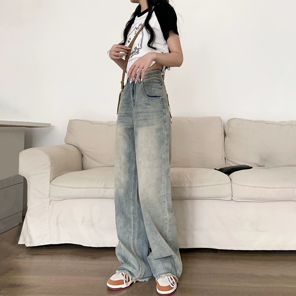 300斤特大码复古毛边阔腿牛仔裤女胖mm高腰显瘦垂感直筒拖地裤子2