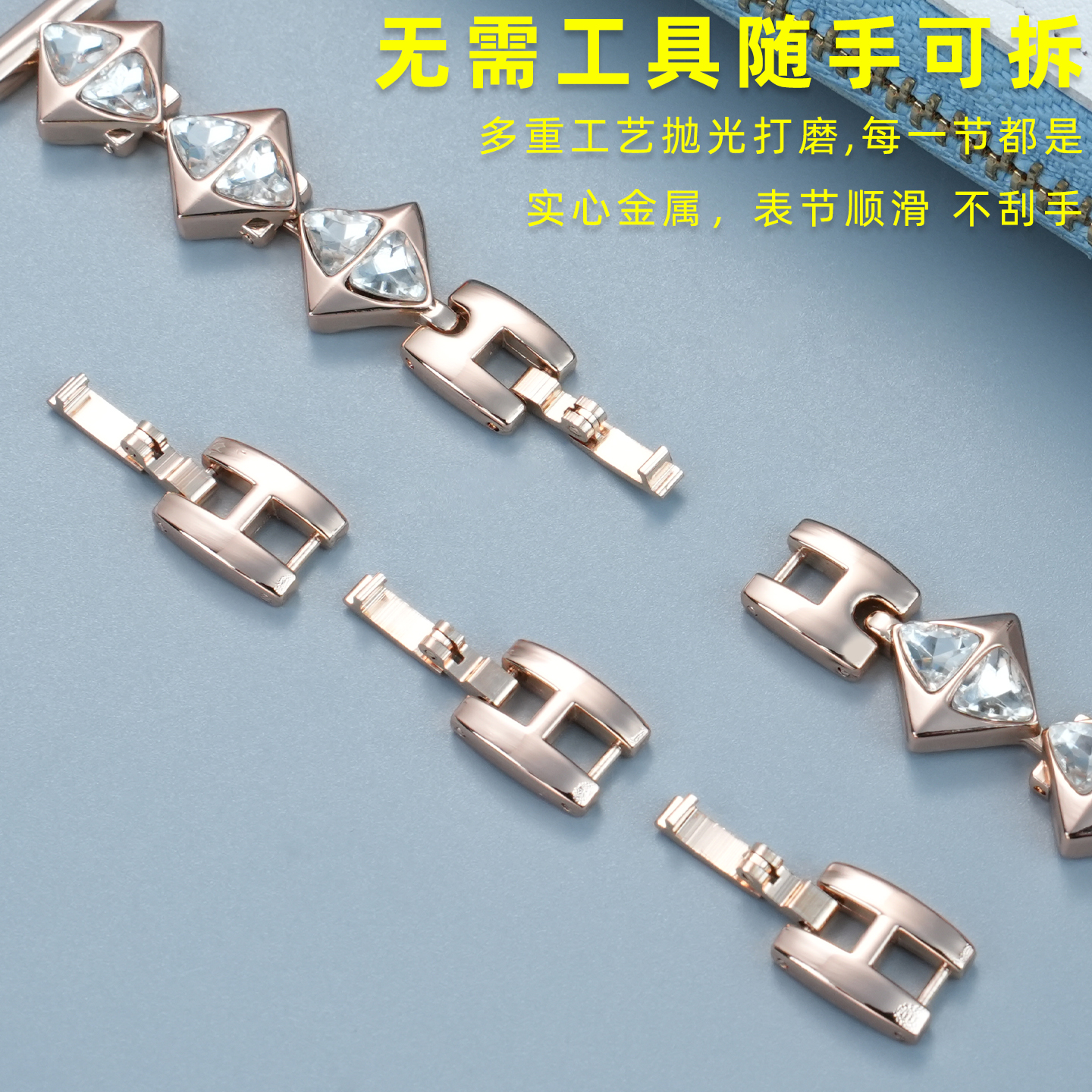 适配阿玛尼满天星AR1926 时尚女表带 ins风镶砖菱形快拆金属表链