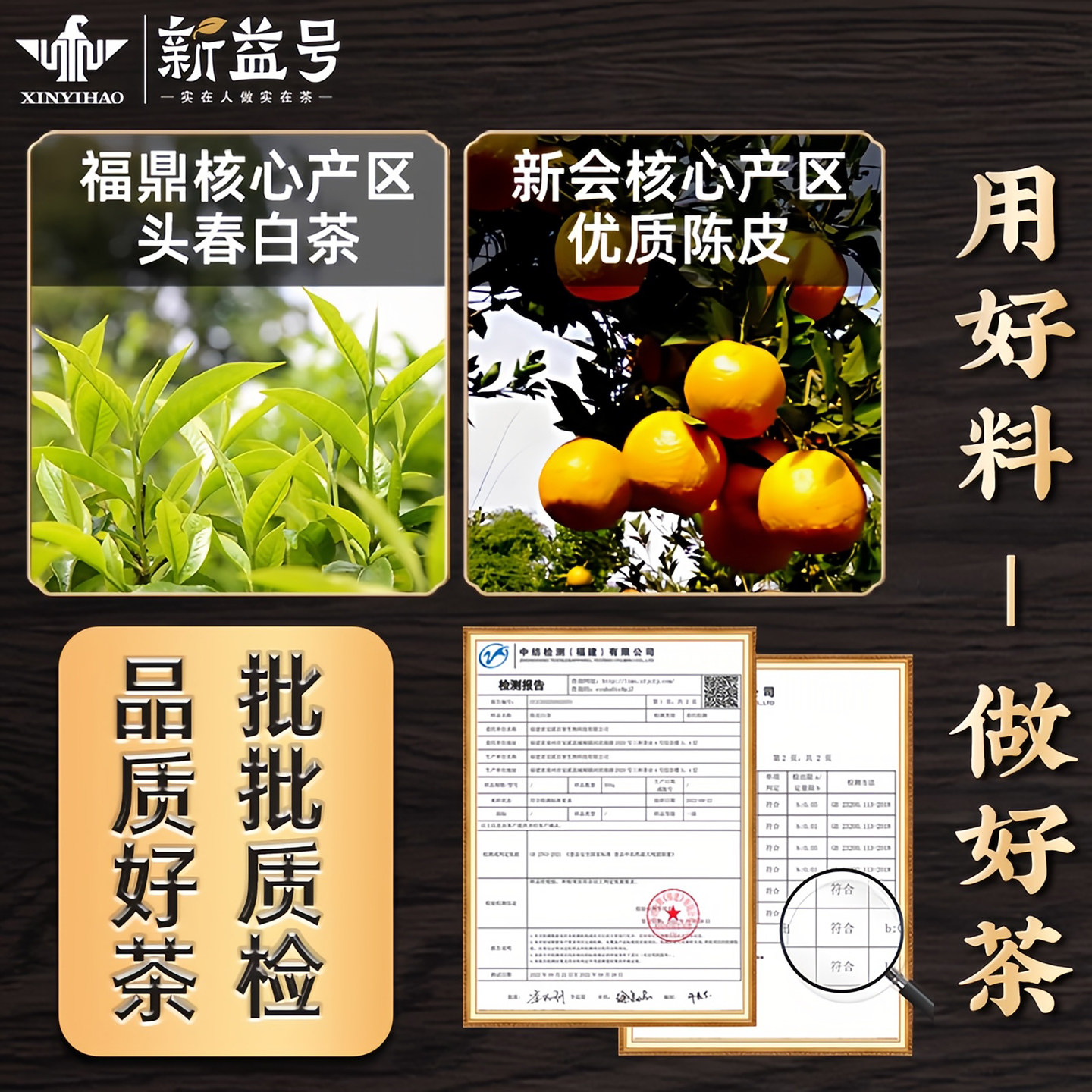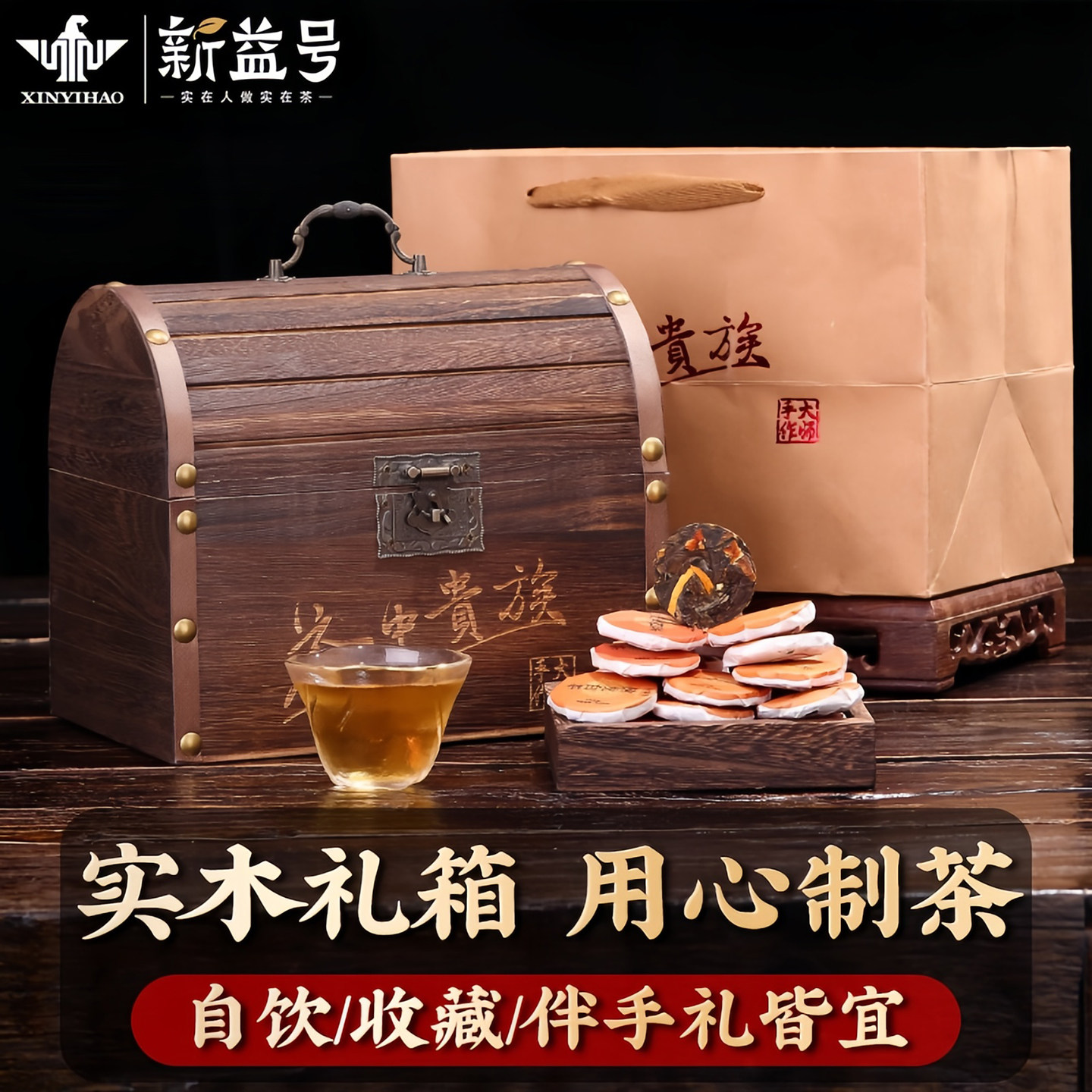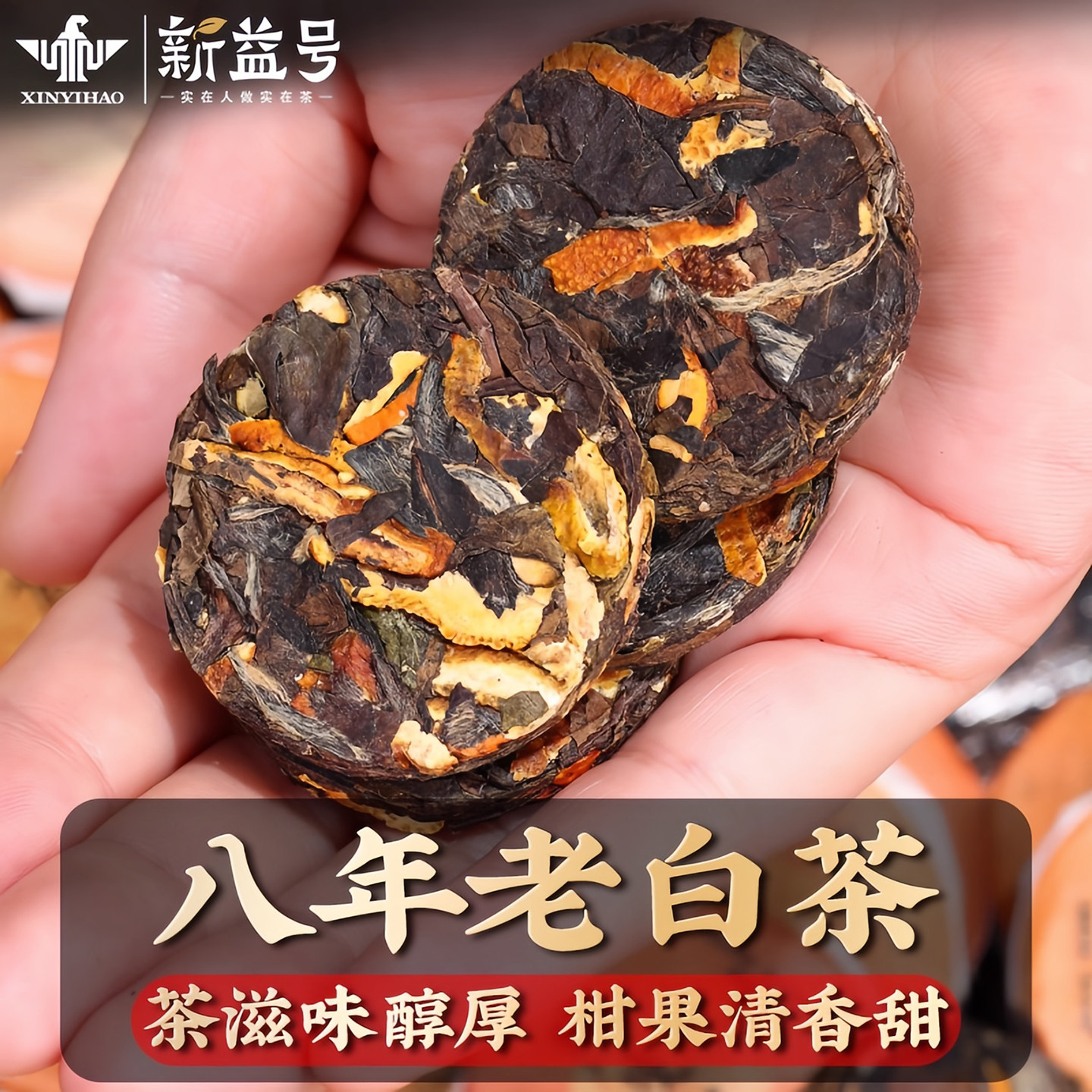 陈皮白茶八年福鼎老白茶寿眉贡眉新益号小方片白茶饼茶叶礼盒装