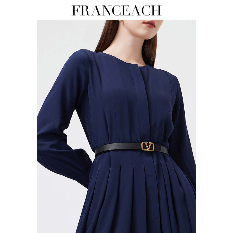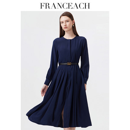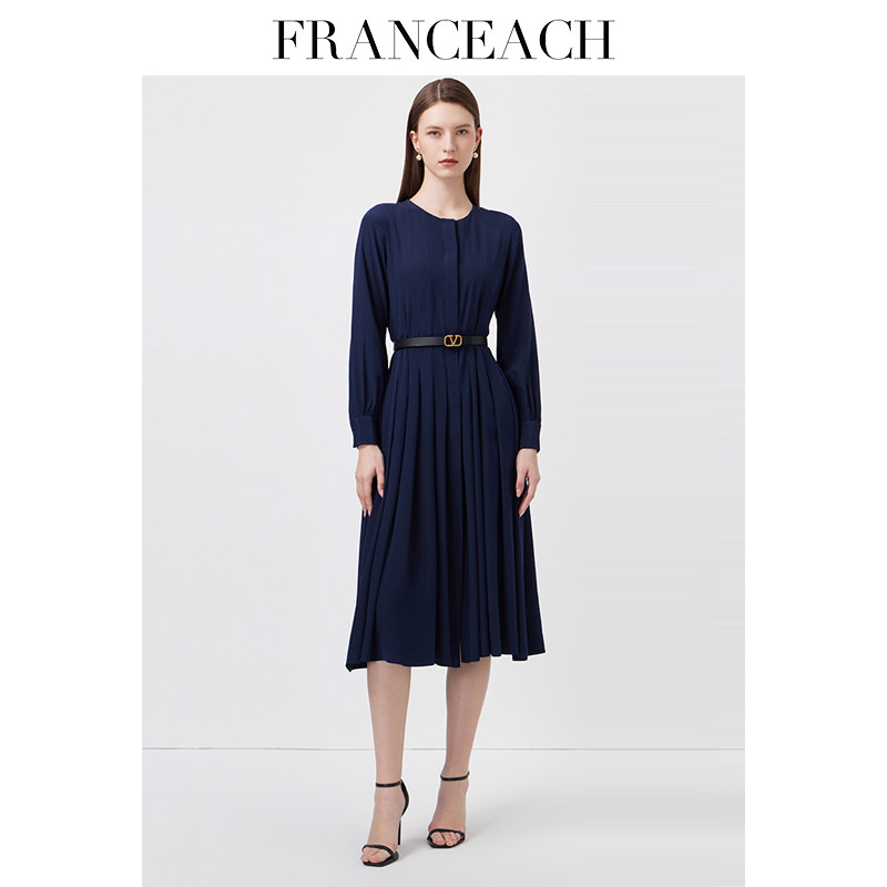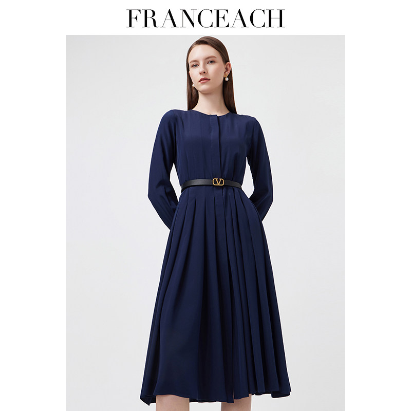 法涵意弛重磅真丝连衣裙女2024春新款法式气质高级感桑蚕丝百褶裙