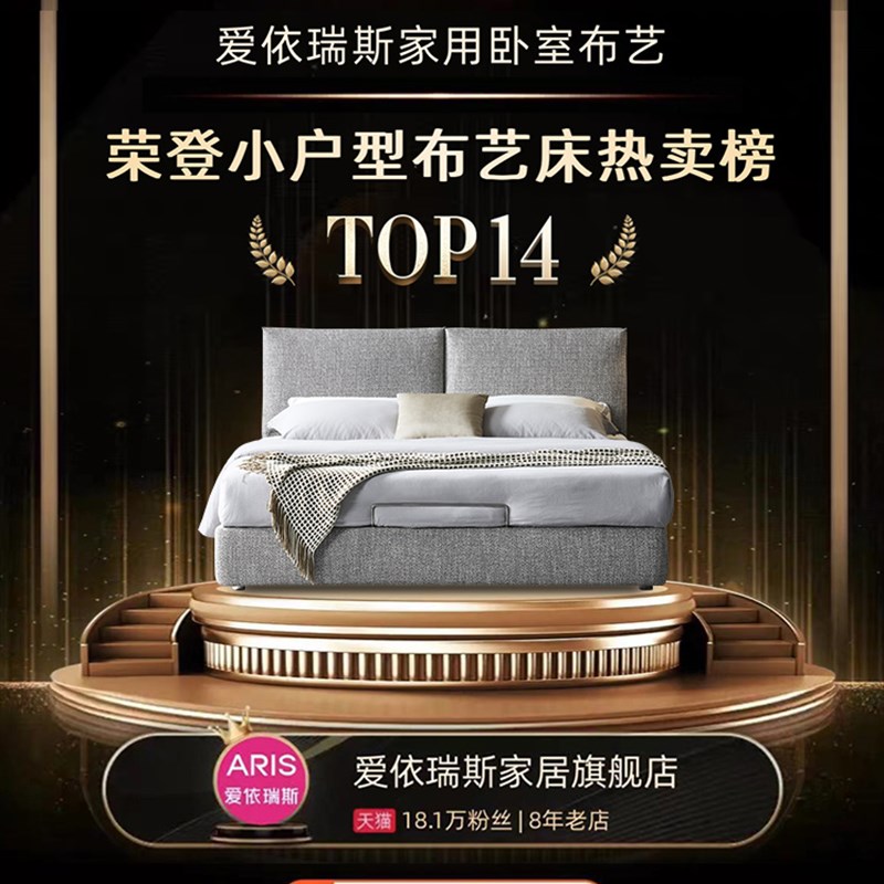 爱依瑞斯现代简约小户型布艺双人床家用卧室齐边储物床婚床85