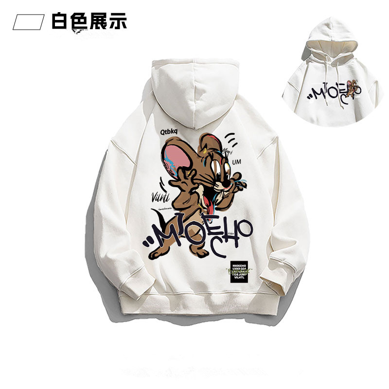 美式复古猫和老鼠连帽卫衣男女2025新款重磅秋冬宽松加绒慵懒外套