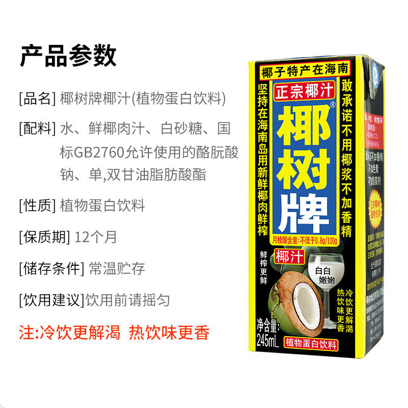 椰树椰汁正宗椰树椰子汁饮料海南245ML*24盒x2箱植物蛋白椰奶