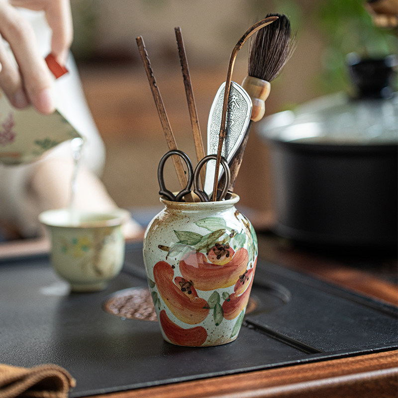 巷子尾〖古风手绘小花瓶〗新中式迷你陶瓷花瓶复古粗陶茶室小摆件