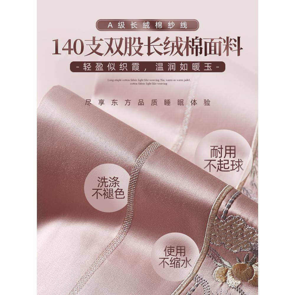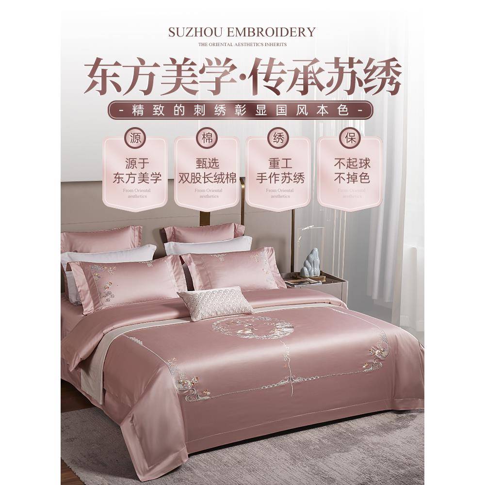 思辰家纺中式婚庆四件套140支全棉纯棉床单粉色高端结婚床上用品