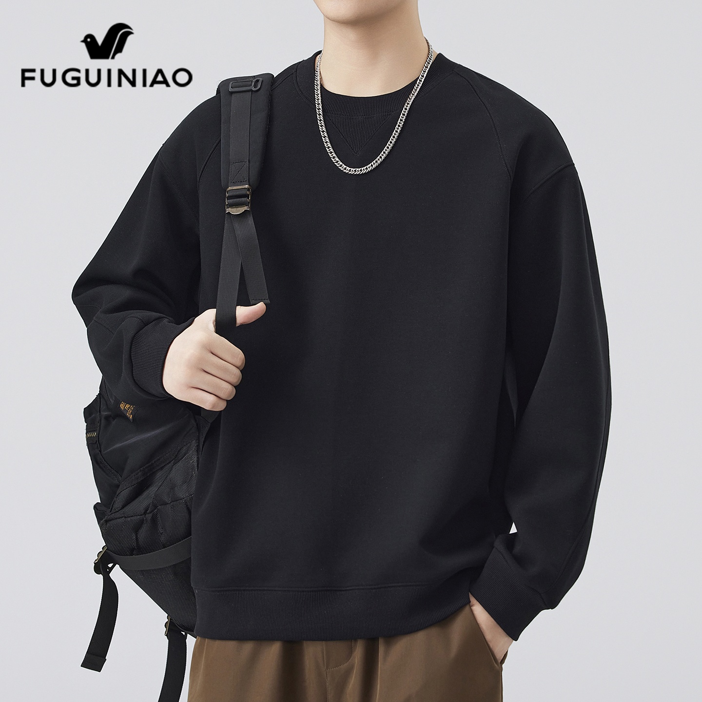 富贵鸟卫衣男士重磅美式圆领衣服2025年秋季休闲宽松长袖t恤男装
