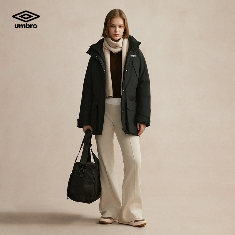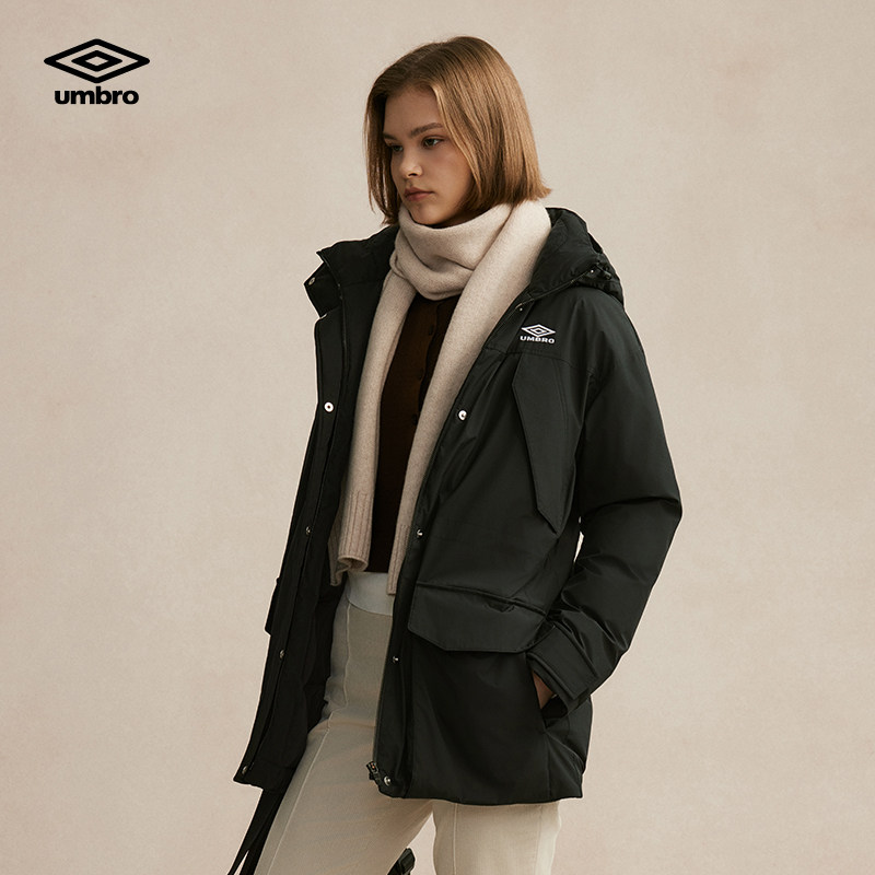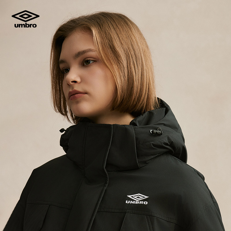 umbro茵宝收腰运动羽绒服鸭绒可拆卸连帽大口袋冬季大衣外套女款