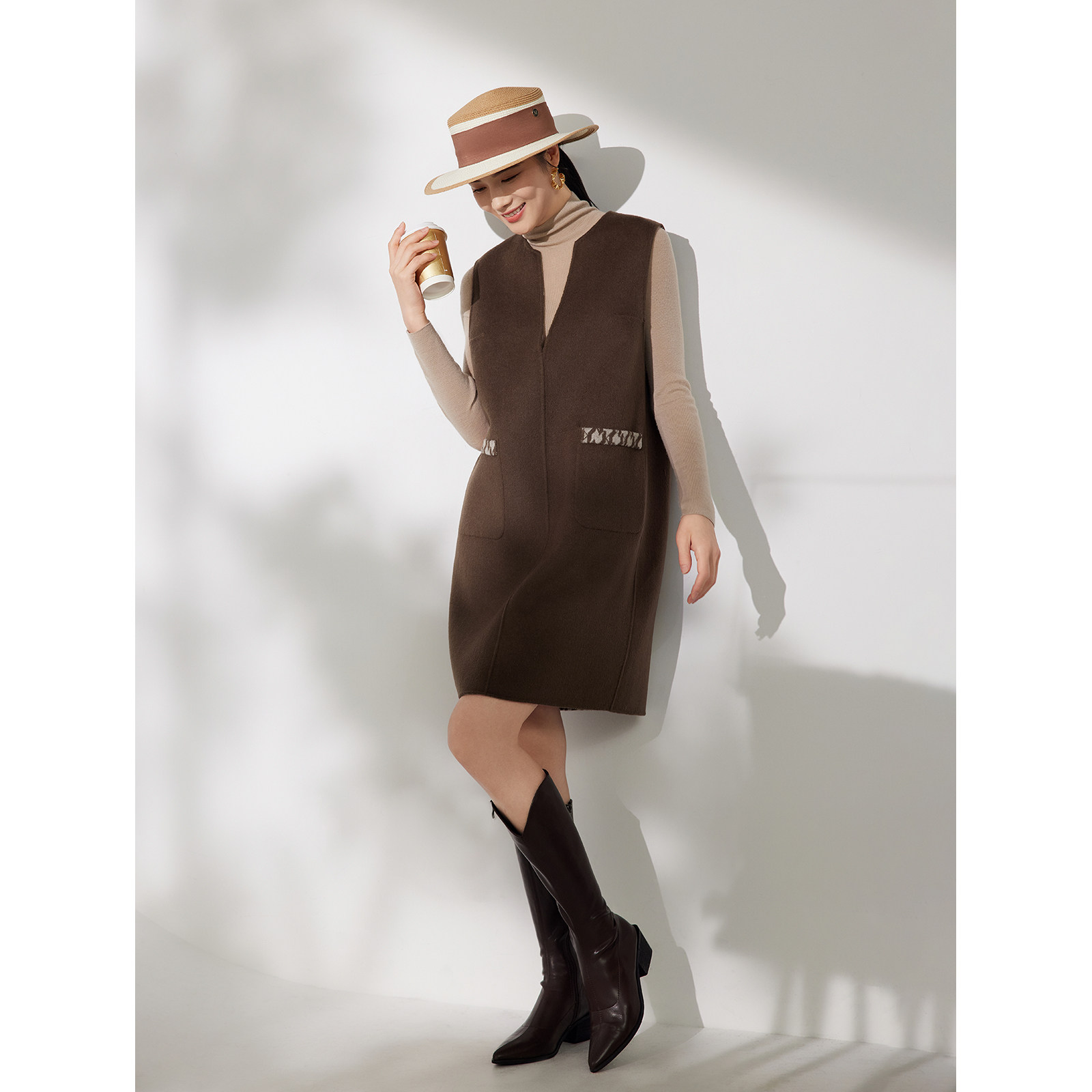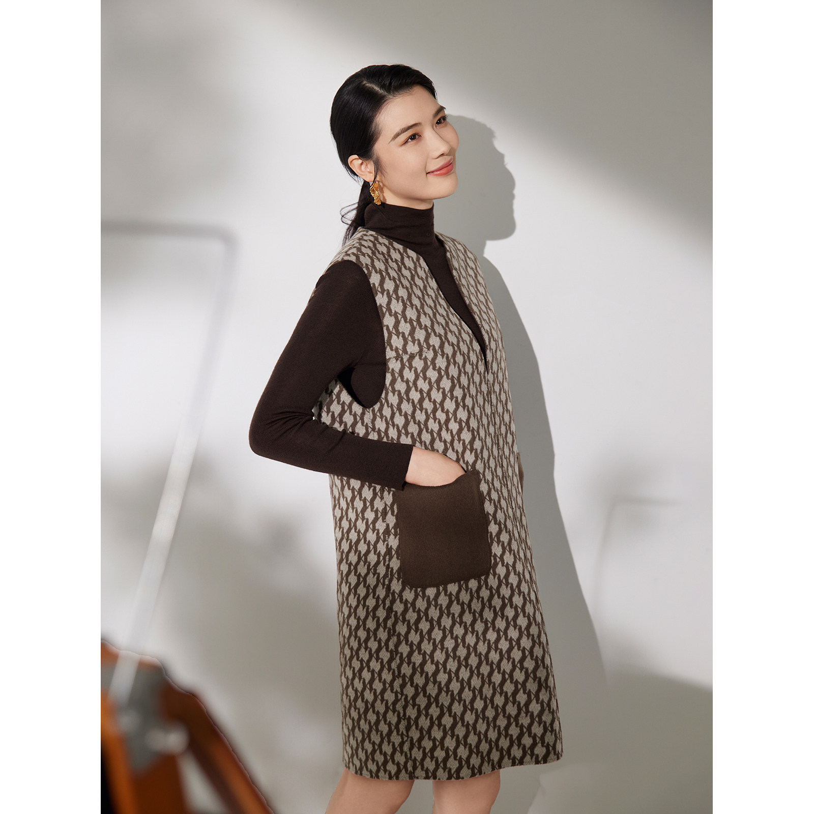 【摩登艺术提花】BBLLUUEE粉蓝衣橱商场同款秋冬东方感背心连衣裙