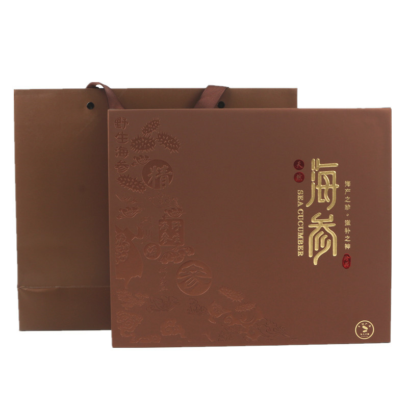 新款海参包装盒礼品盒棕色500克装亚克力内盒干海参礼盒皮盒批发