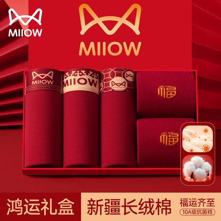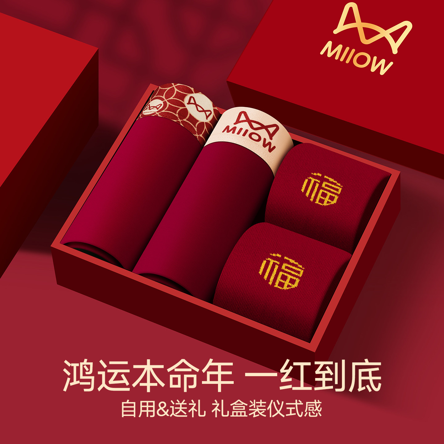 猫人本命年男士内裤纯棉红色短裤2026新款马年结婚礼物四角裤礼盒