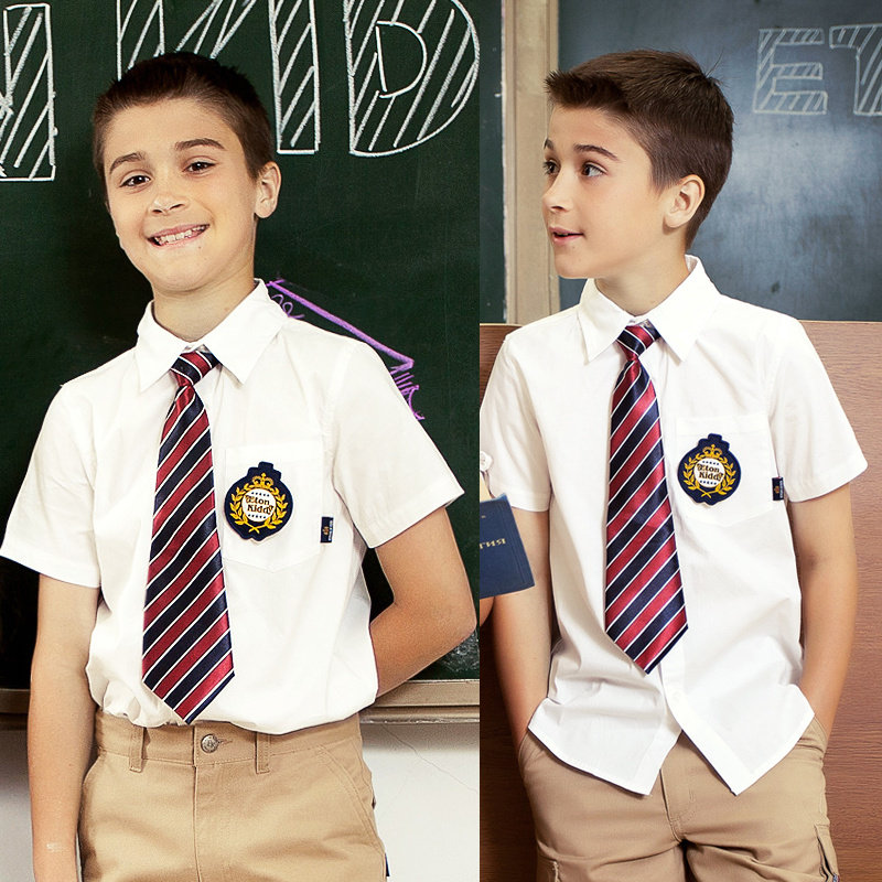 伊顿纪德学院校服童装儿童纯棉短袖衬衫男大童短袖白衬衣10C101惠