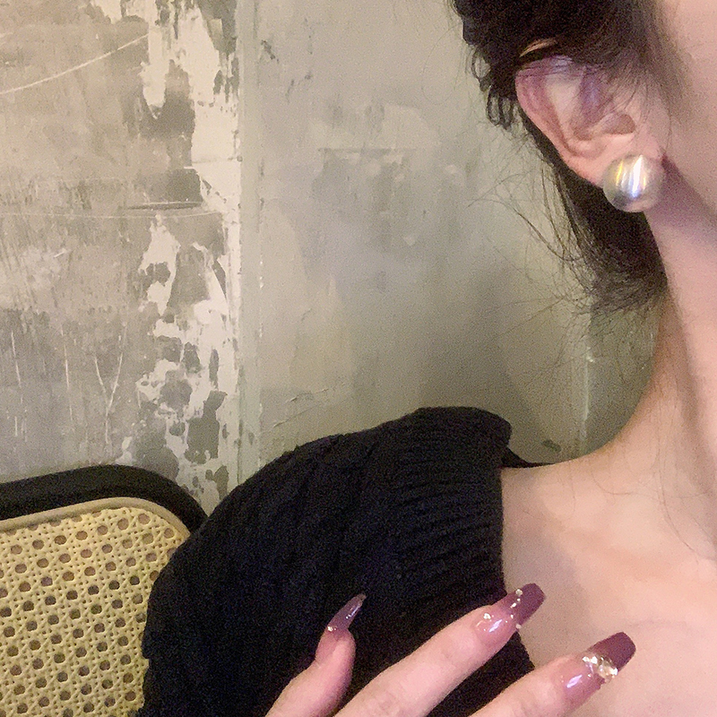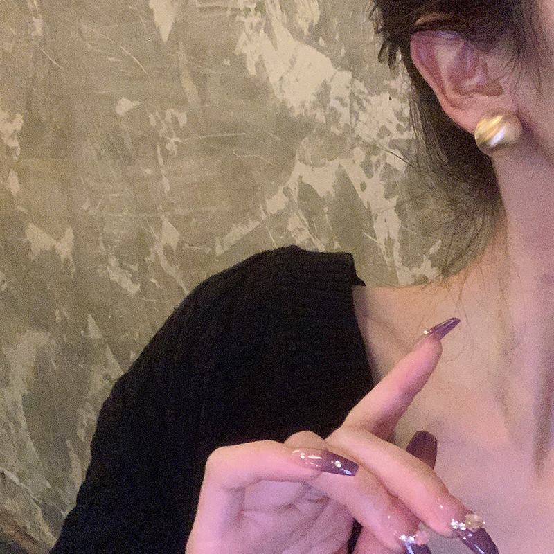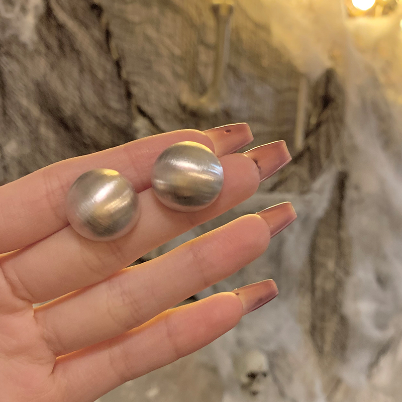 时髦复古金属磨砂拉丝半圆球耳钉法式气质高级感耳环小众百搭耳饰