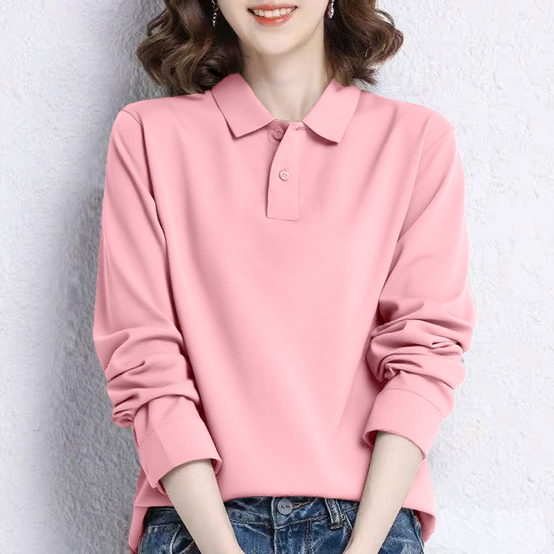 纯棉大码polo衫长袖t恤女2025春秋新款洋气宽松显瘦减龄翻领上衣