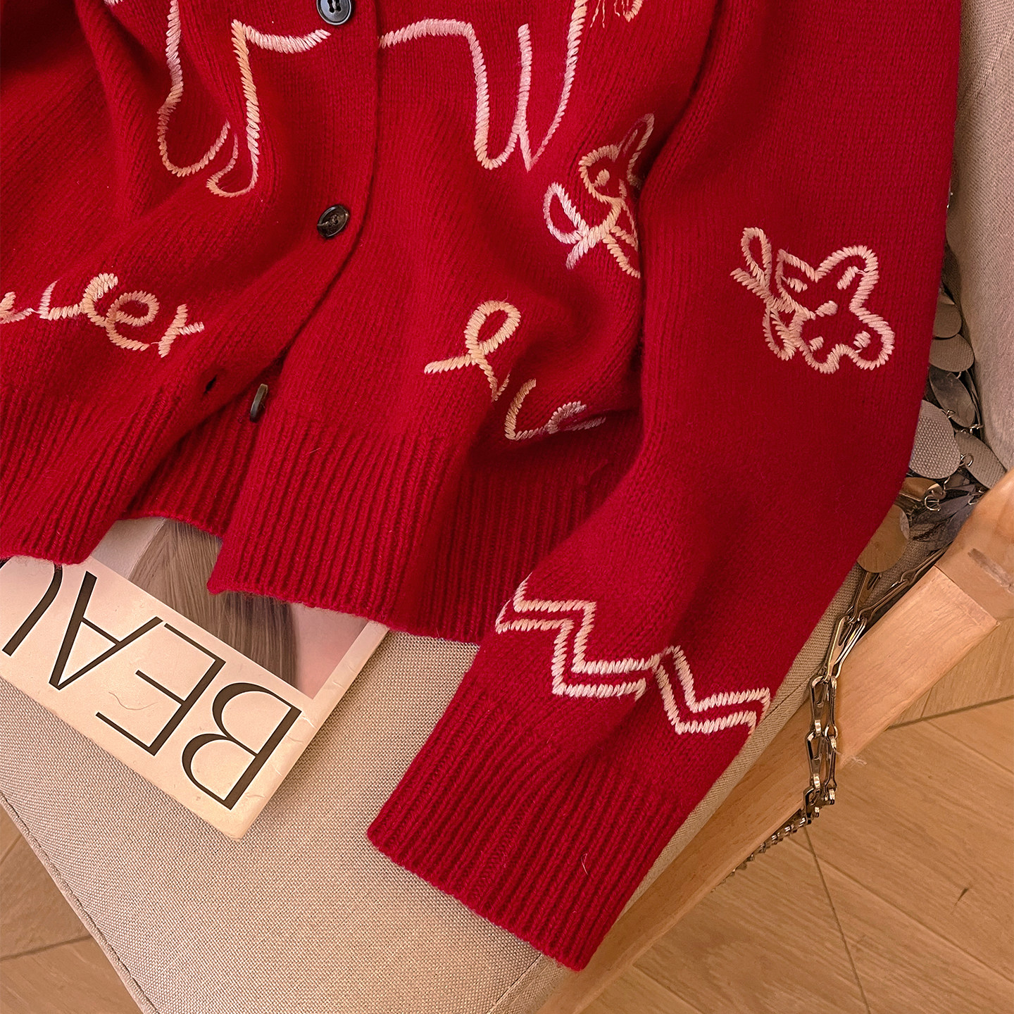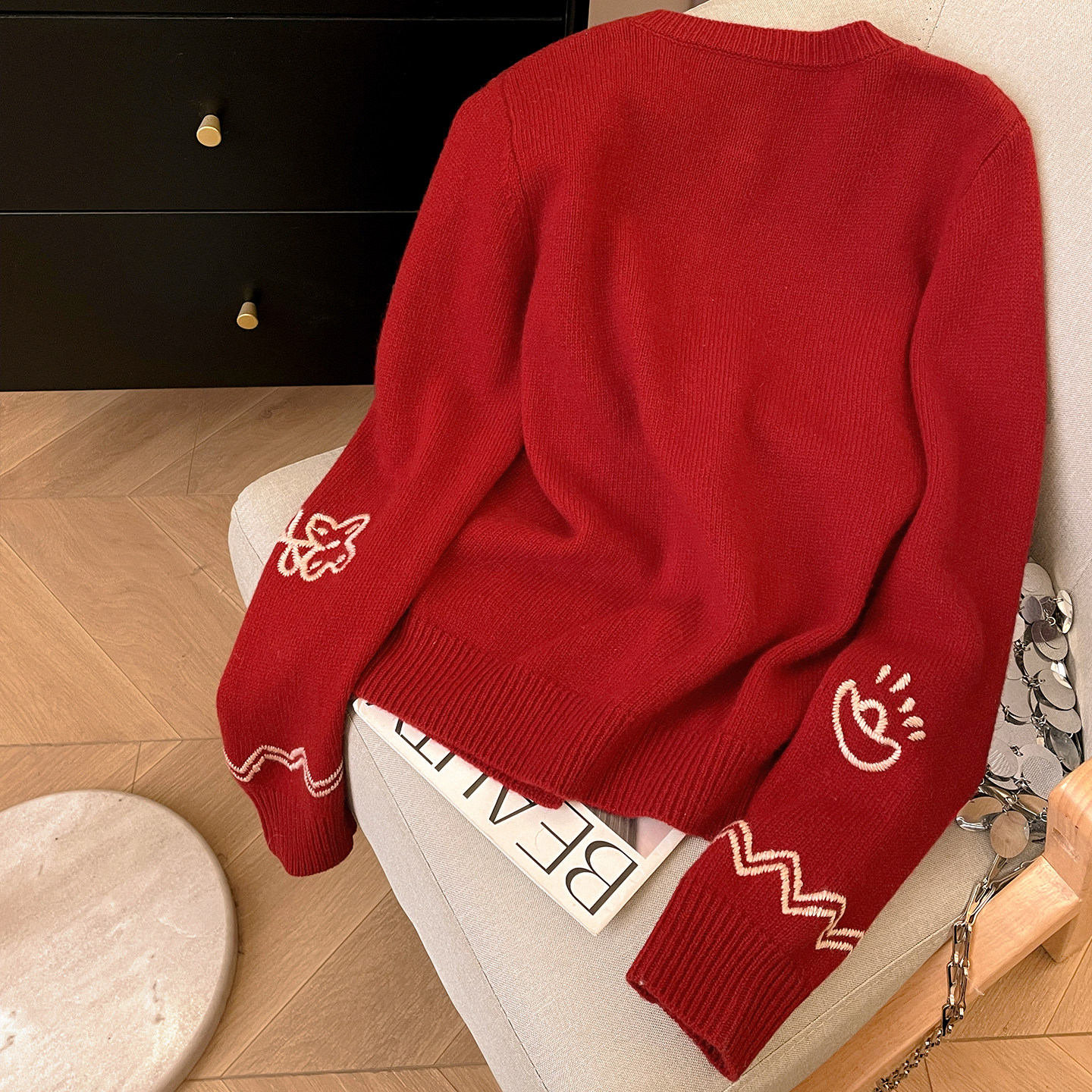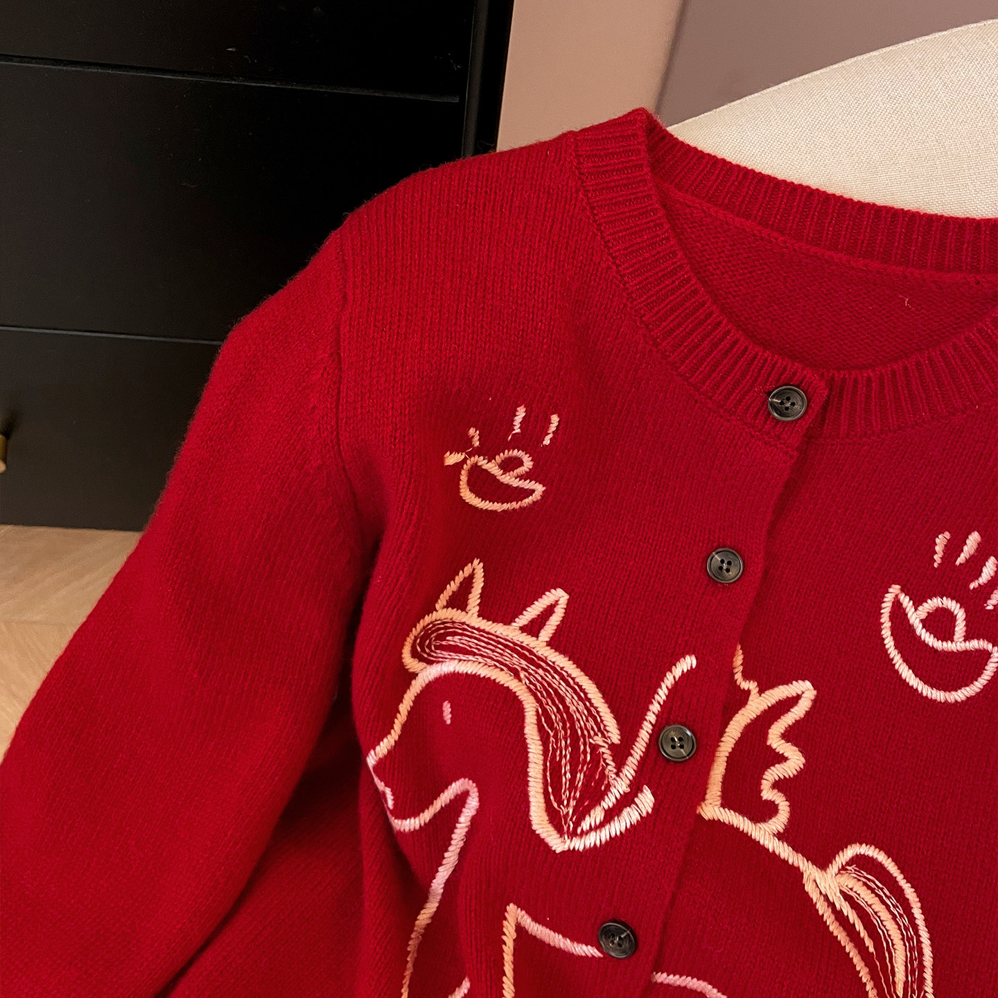 小C家 卡通小马刺绣毛衣女款2025新款冬季圆领羊毛衫针织开衫上衣