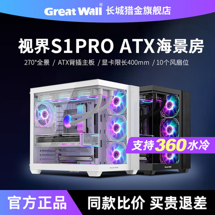 长城机箱S1PRO 海景房机箱ATX无立柱360水冷白色游戏台式电脑机箱