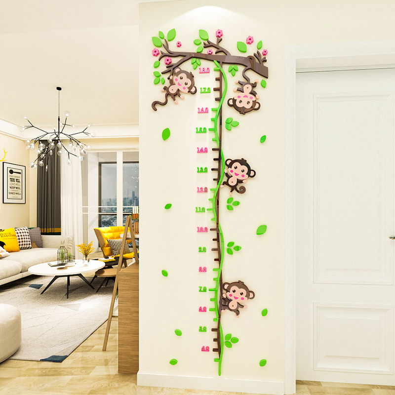 身高墙贴纸儿童房间布置r宝宝w量身高卡通墙贴3d立体幼儿园墙面装