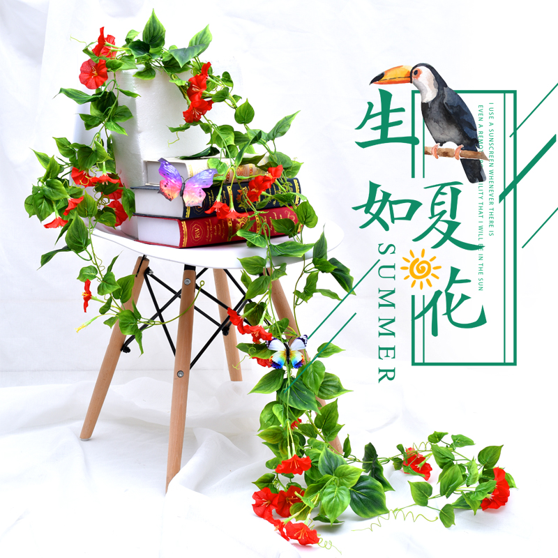 仿真牵牛花藤条装饰花藤空调管水管道遮挡吊顶假花藤蔓塑料喇叭花