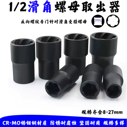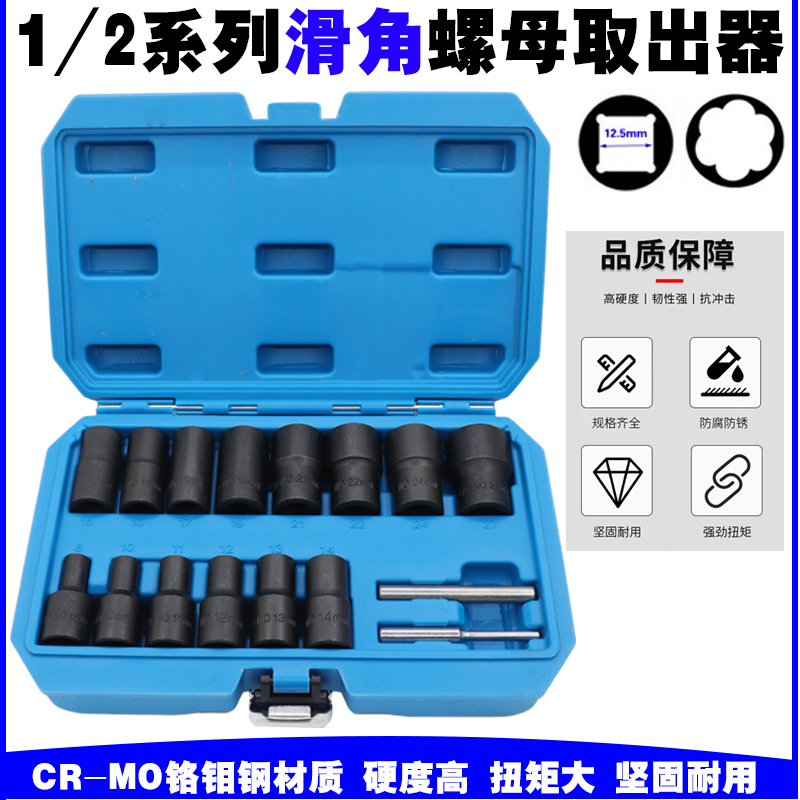 16件套汽车轮胎螺帽取出器受损滑牙螺母拆除工具螺旋式防滑套筒组