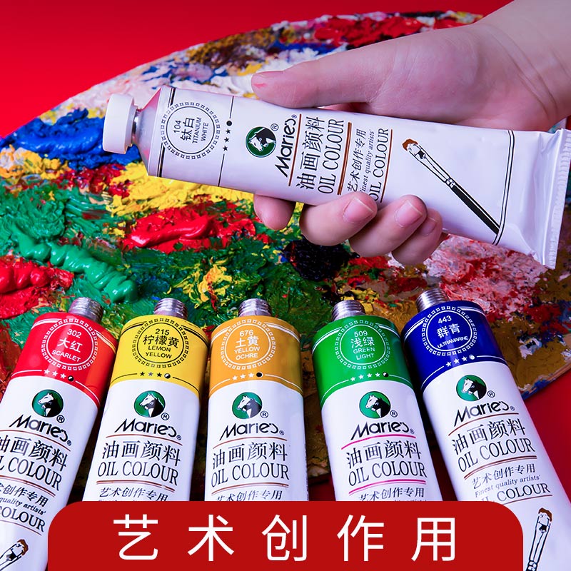 170ml油画颜料工具套装材料初学者染料涂料用具全套用品单支颜色钛白白色玛丽儿童美术画具颜料48色24色画画