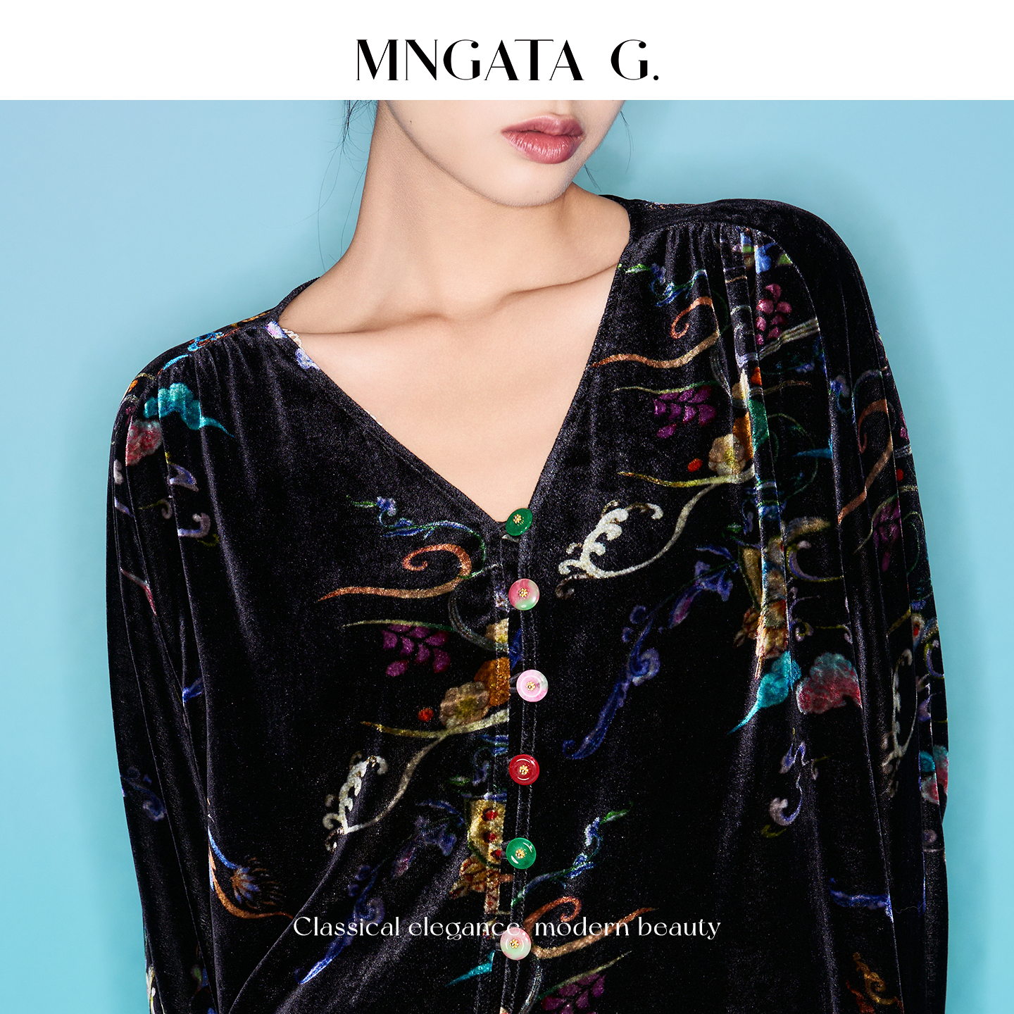宫小妍【真丝·三彩序】丝绒高密新中式国风外套5121703