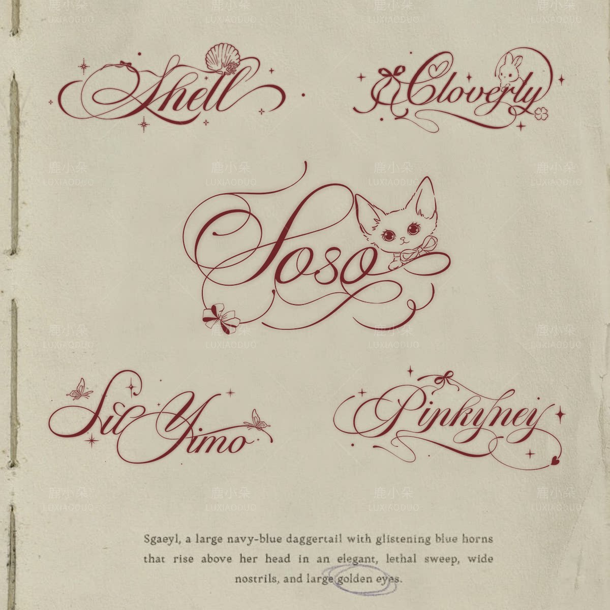 原创手绘蝴蝶结花体字体logo设计