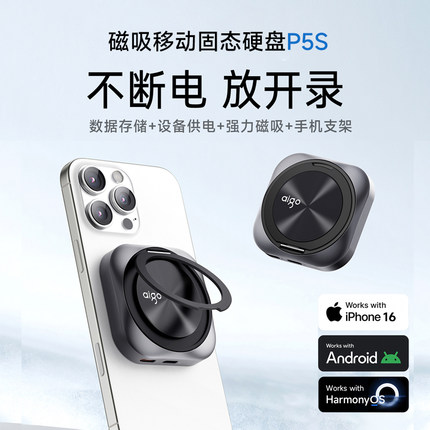 爱国者P5S磁吸移动固态硬盘1t大容量高速手机移动硬盘2tb100W供电