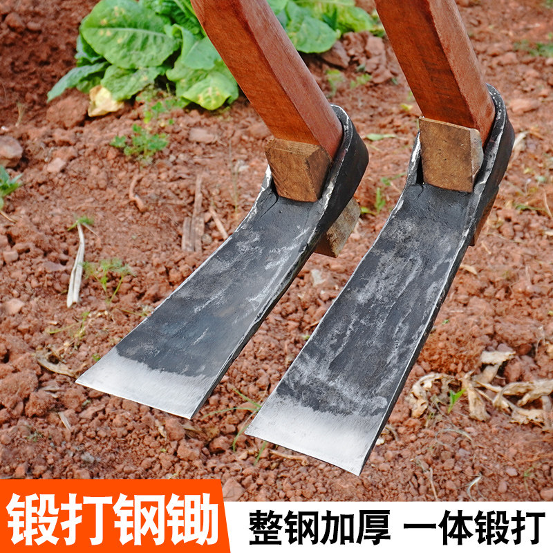 手工锻打弹簧钢锄头农用工具加厚种菜挖笋挖地开荒除草冬笋