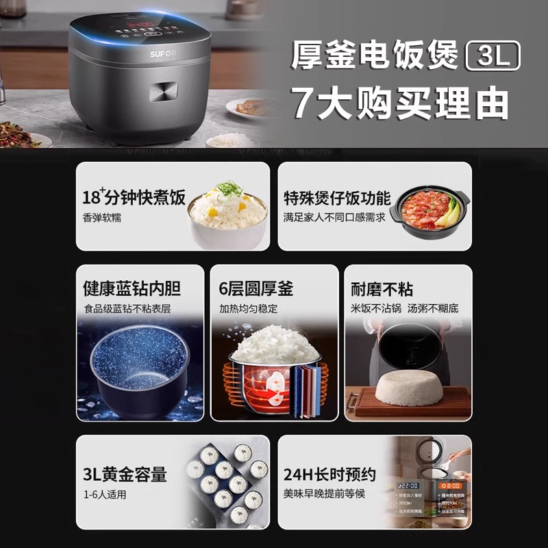 苏泊尔电饭煲家用3升4升5升多功能蓝钻圆厚釜内胆电饭锅768