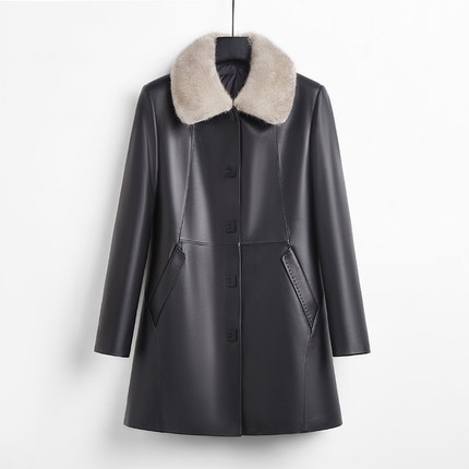 法歌弟海宁真皮皮衣女中长款绵羊皮羽绒服外套水貂毛领内胆可脱卸