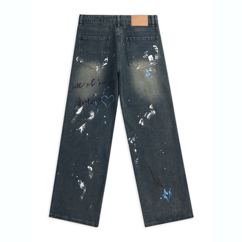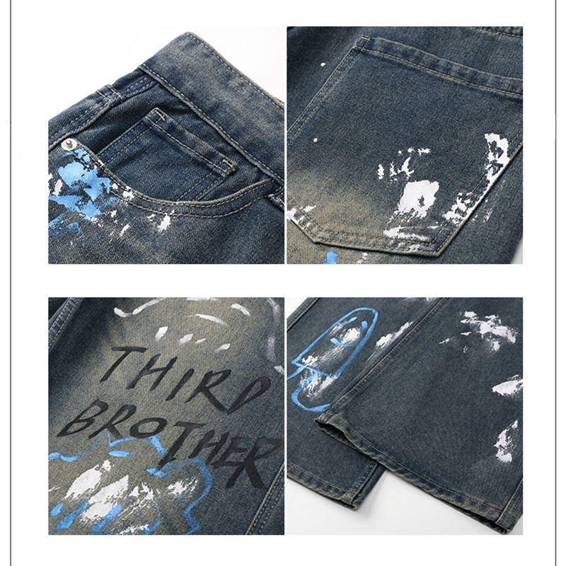 DESIGNSECRETS 25FW欧美复古街头涂鸦印花牛仔裤男士破洞休闲裤子