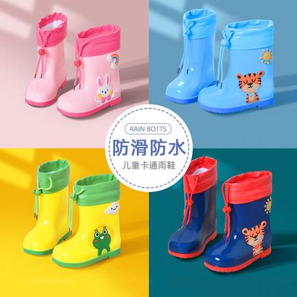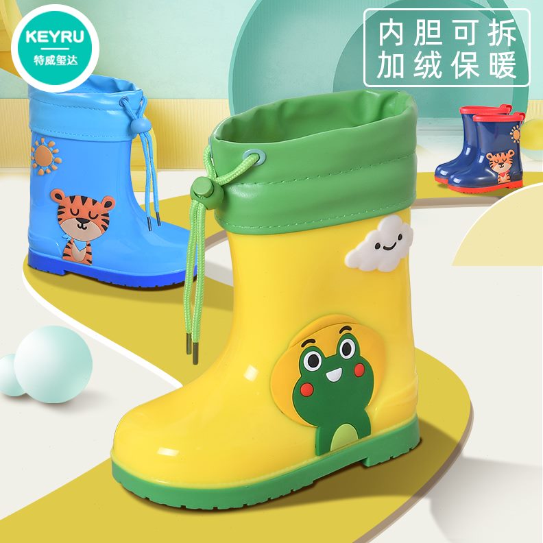 可拆卸水鞋幼儿踩加绒女童雨靴橡胶防滑防水儿童雨鞋加厚耐磨男童