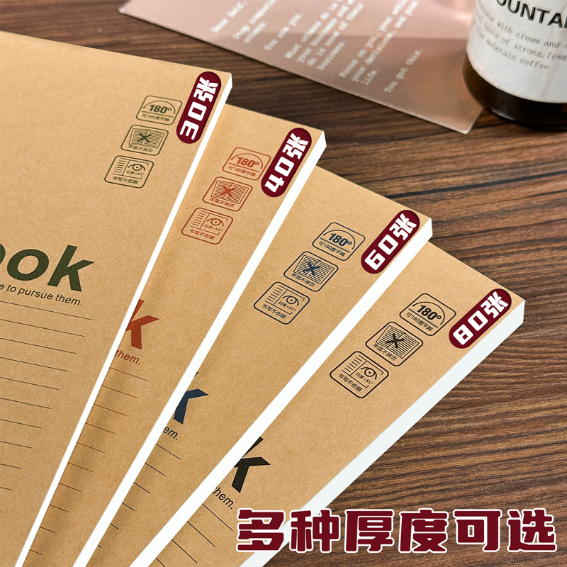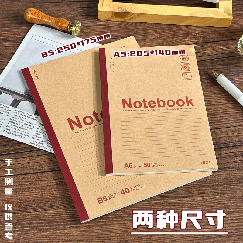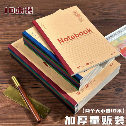 a5加厚复古笔记本本子b5软面抄横线作业本无线胶装包背本大学生课堂练习本超厚牛皮纸封面日记本可撕内页纸本