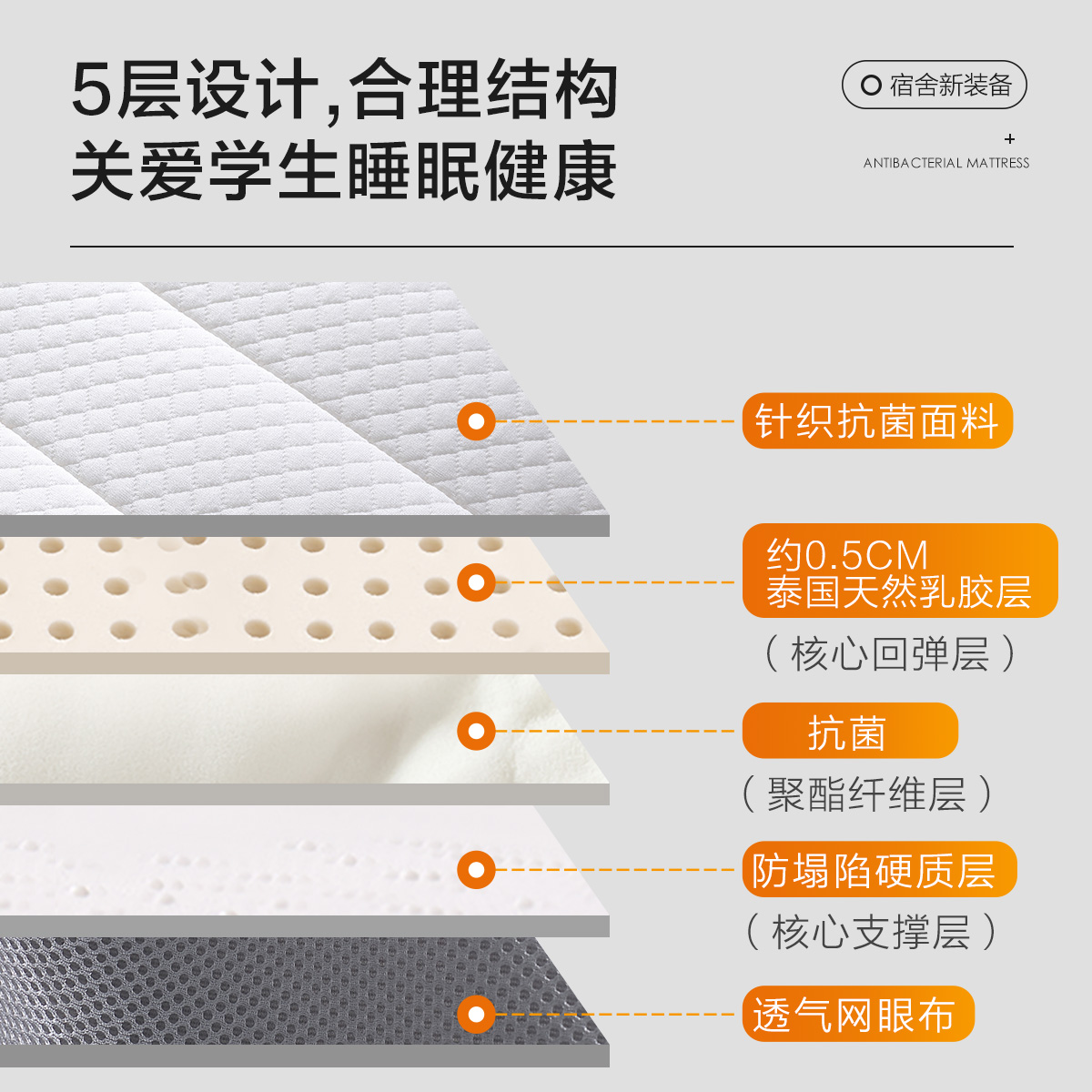 水星家纺泰国原液进口天然乳胶复合床垫软垫学生宿舍防滑单人床褥