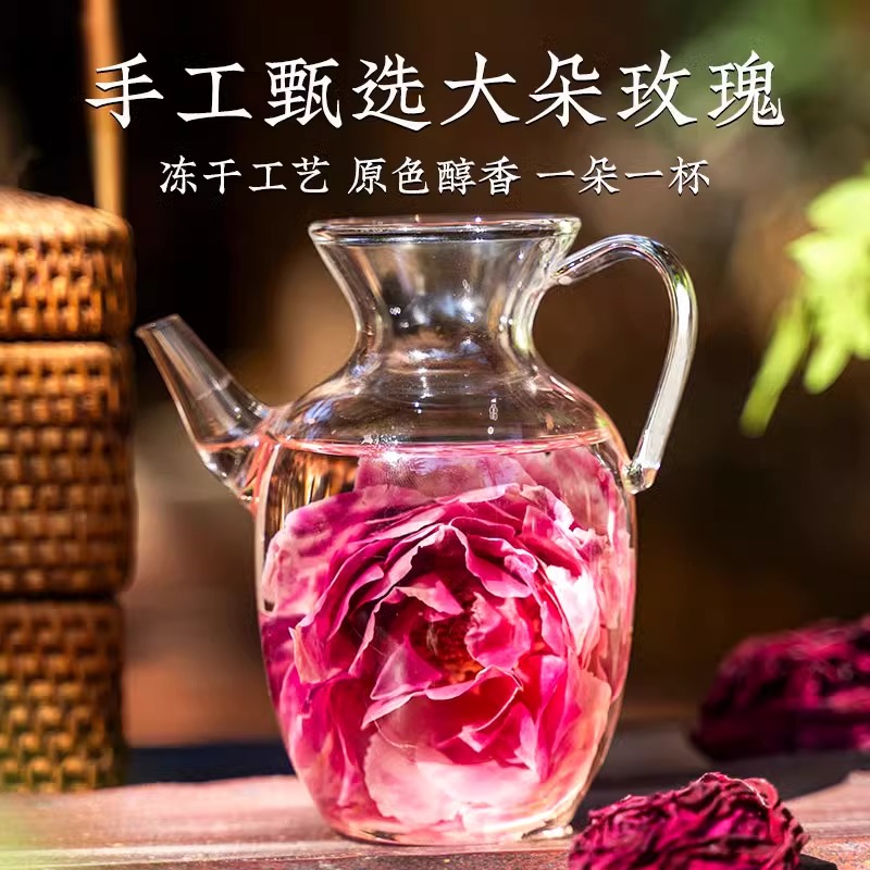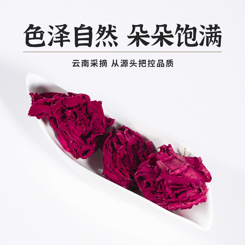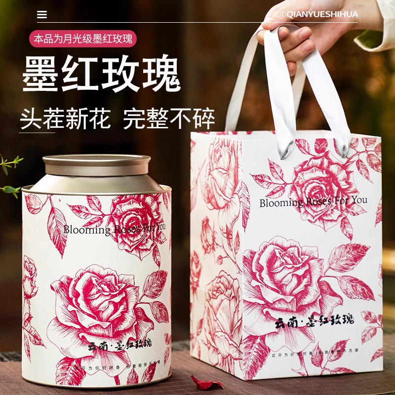 墨红玫瑰云南花茶冻干大朵正品罐装礼盒官方旗舰店玫瑰花茶头茬