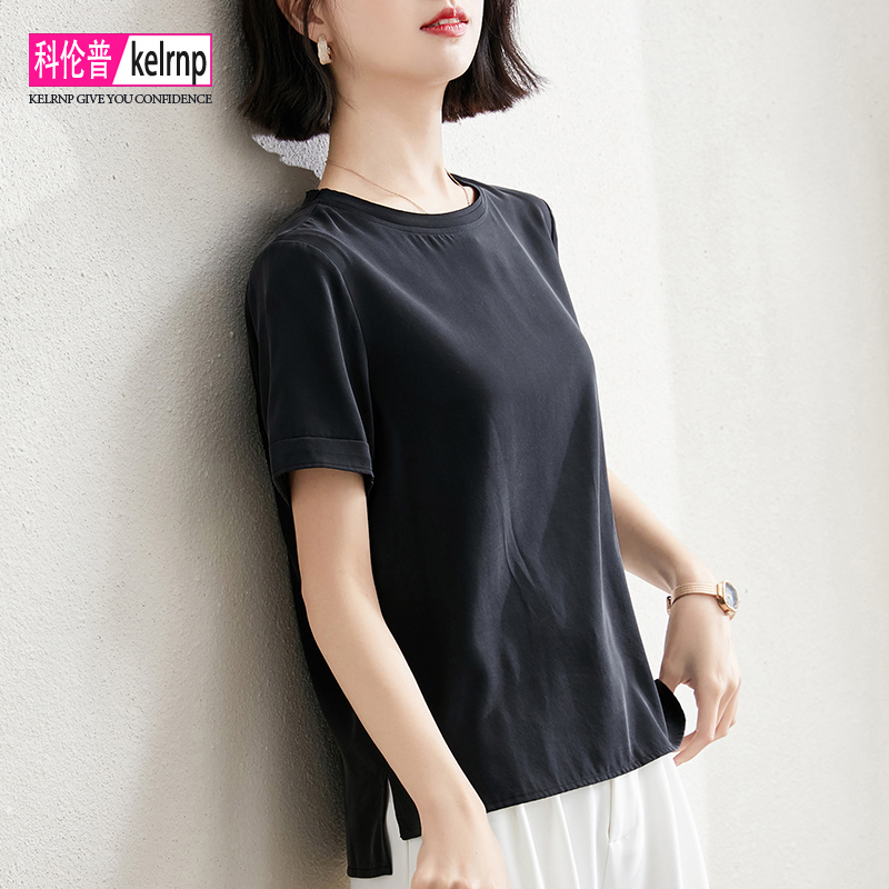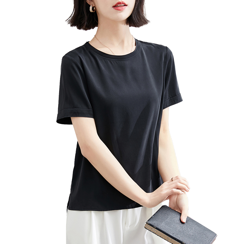 重磅真丝绸缎面t恤女2025夏新款休闲百搭短袖优雅纯色桑蚕丝上衣