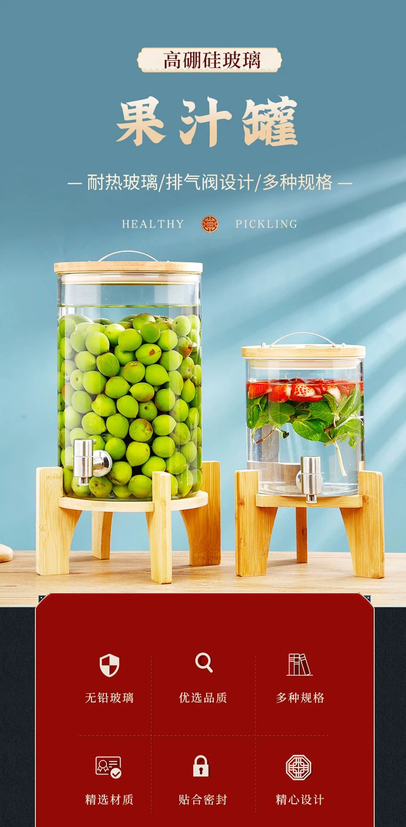 耐高温人参泡酒玻璃瓶带龙头青梅果酒泡酒桶葡萄酿酒瓶药酒密封罐
