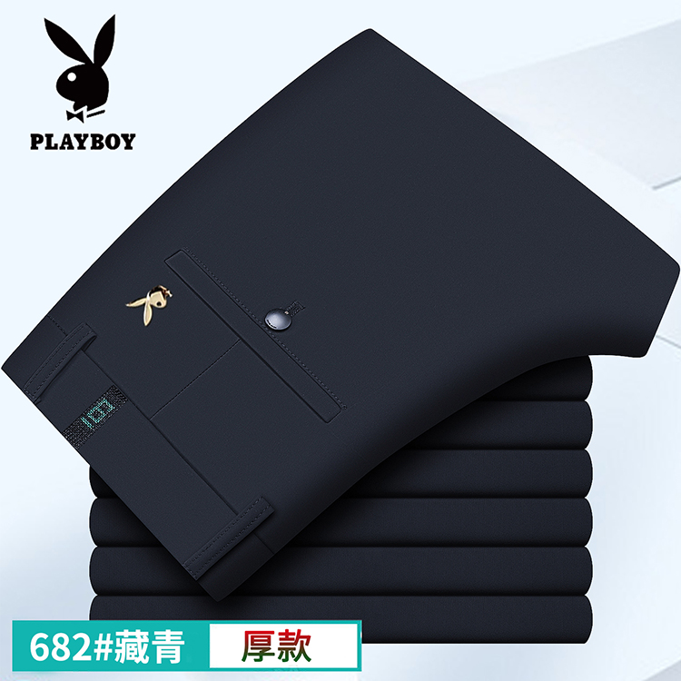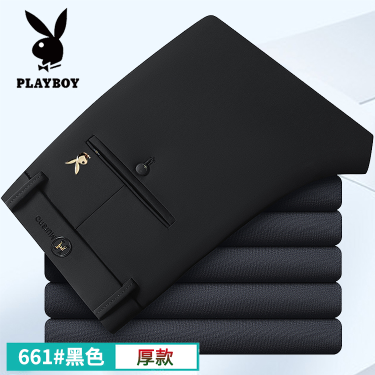花花公子男士春秋厚款休闲裤中年弹力直筒裤商务高腰男长裤子免烫