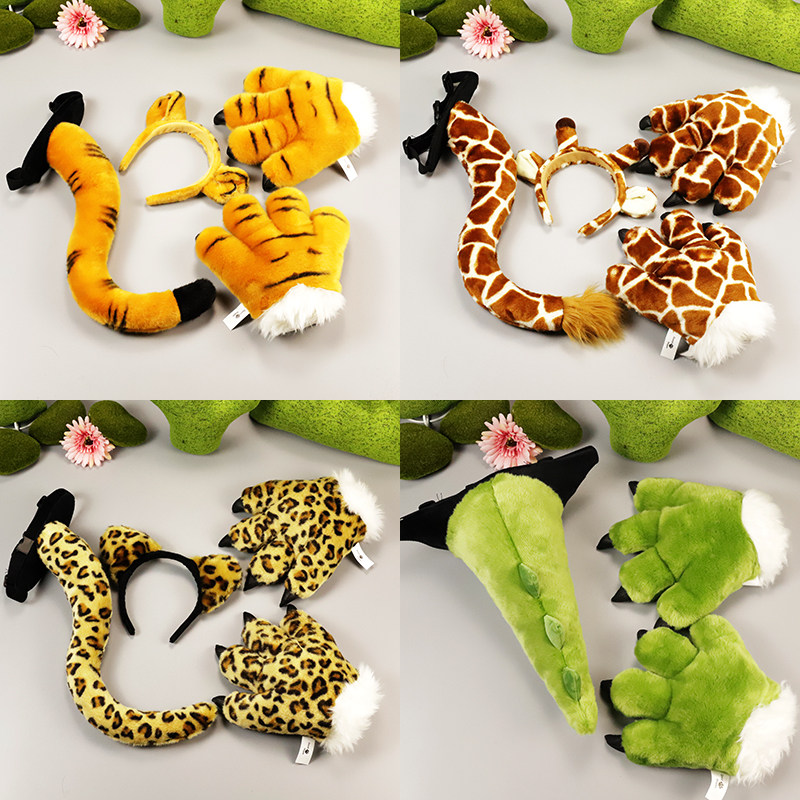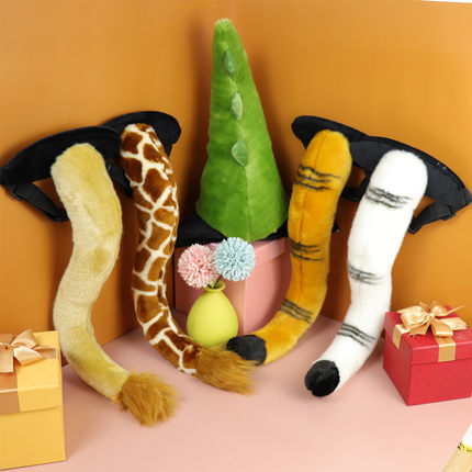 动物园仿真老虎尾巴恐龙雪豹狮子长颈鹿毛绒尾巴儿童表演道具通用