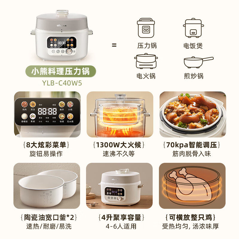 小熊电压力锅4升家用大容量双胆电高压锅多功能电饭煲官方正品